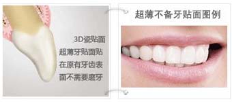 | 传统牙贴面需磨齿,对牙齿损害较大 | 超薄瓷贴面无需磨牙,贴面薄至0.1mm,对牙齿没有任何伤害 |