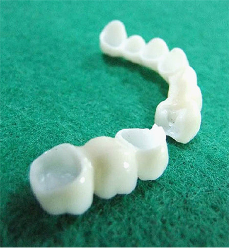 4、半贵金属烤瓷牙:代表是钴铬合金烤瓷牙,其生物相容性优于非贵金属,也比较耐久,可以避免牙龈出血及黑色牙龈的现象出现。